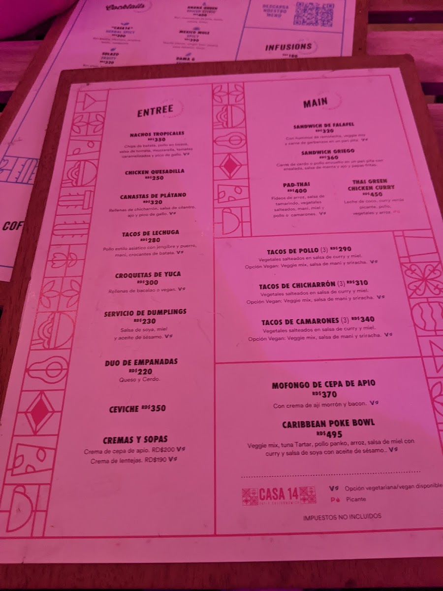 Welcome to Hostal Casa 14, an enchanting culinary oasis nestled in the heart of Santo Domingo. This hidden gem offers a menu that beautifully reflects the vibrant local culture, inviting guests to indulge in a variety of flavors that are both comforting and innovative.